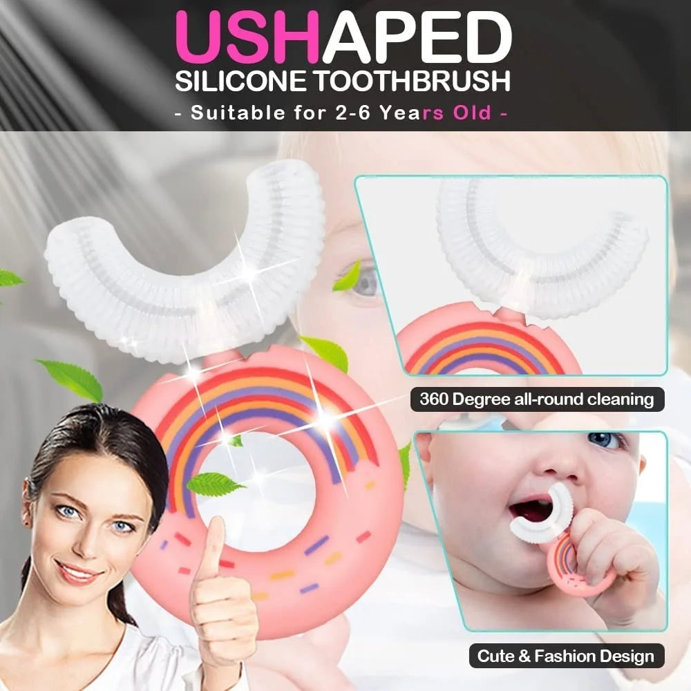 Children 360 Degree Doughnut Manual Toothbrush Kids Silicone U-shaped Tooth Brush Cartoon Gift For 2-6-12 Years Old