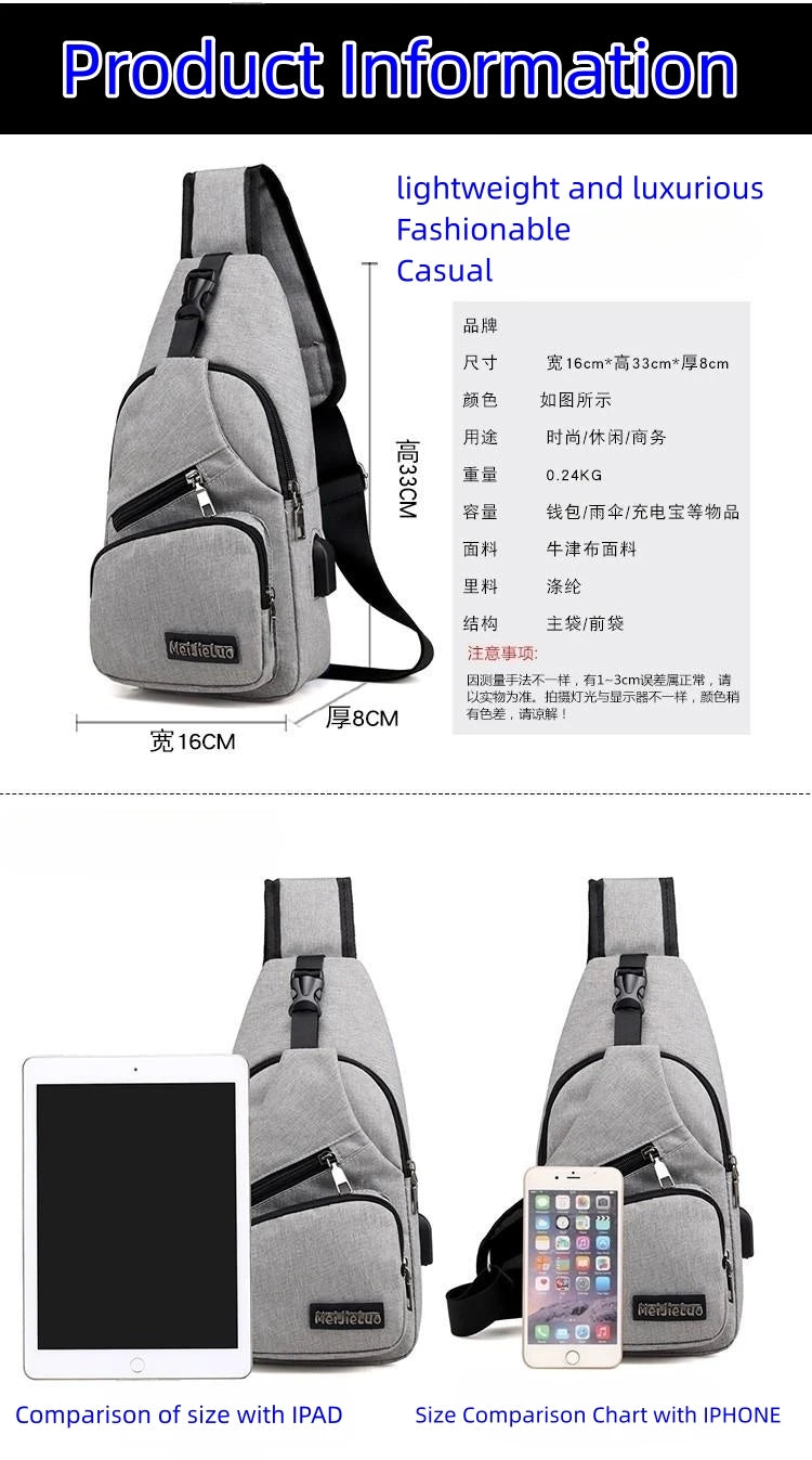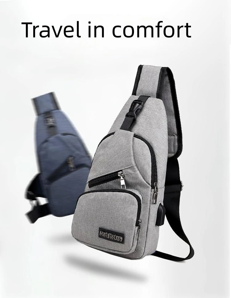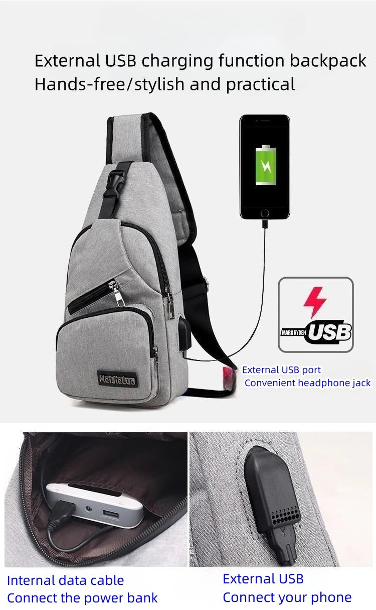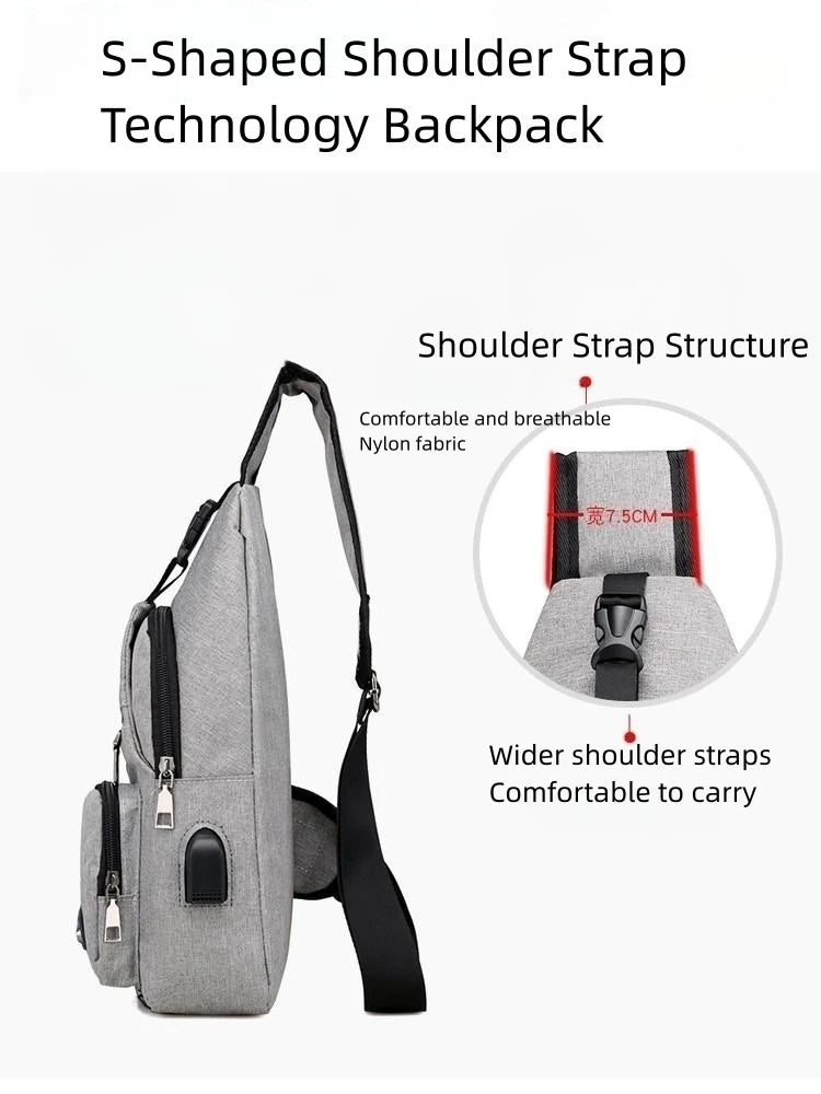 Fashion Boys Shoulder Bag USB Rechargeable Crossbody Bag Men's Anti-theft Multifunctional Chest Bag‘s Travel Backpack Handbag