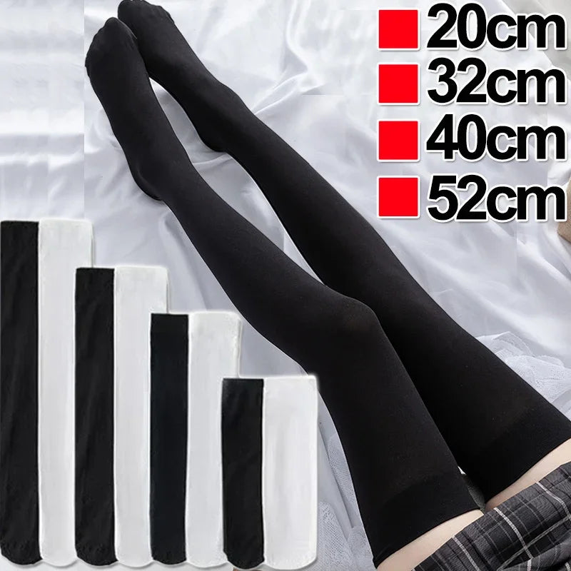 Fashion Woman Socks Cute Black White Velvet Lolita Long Socks Solid Color Knee High Socks Kawaii Cosplay JK Sexy Nylon Stockings