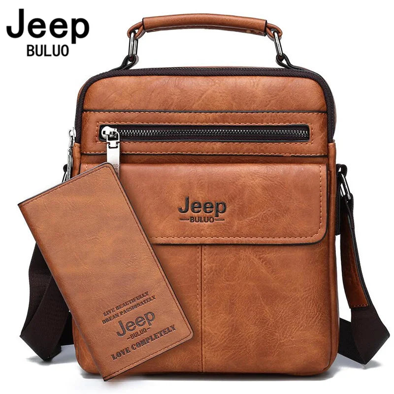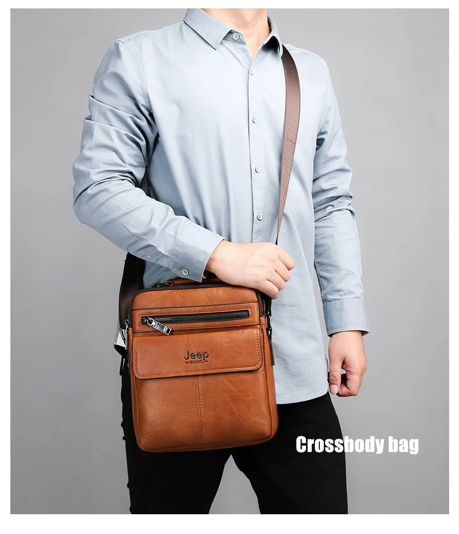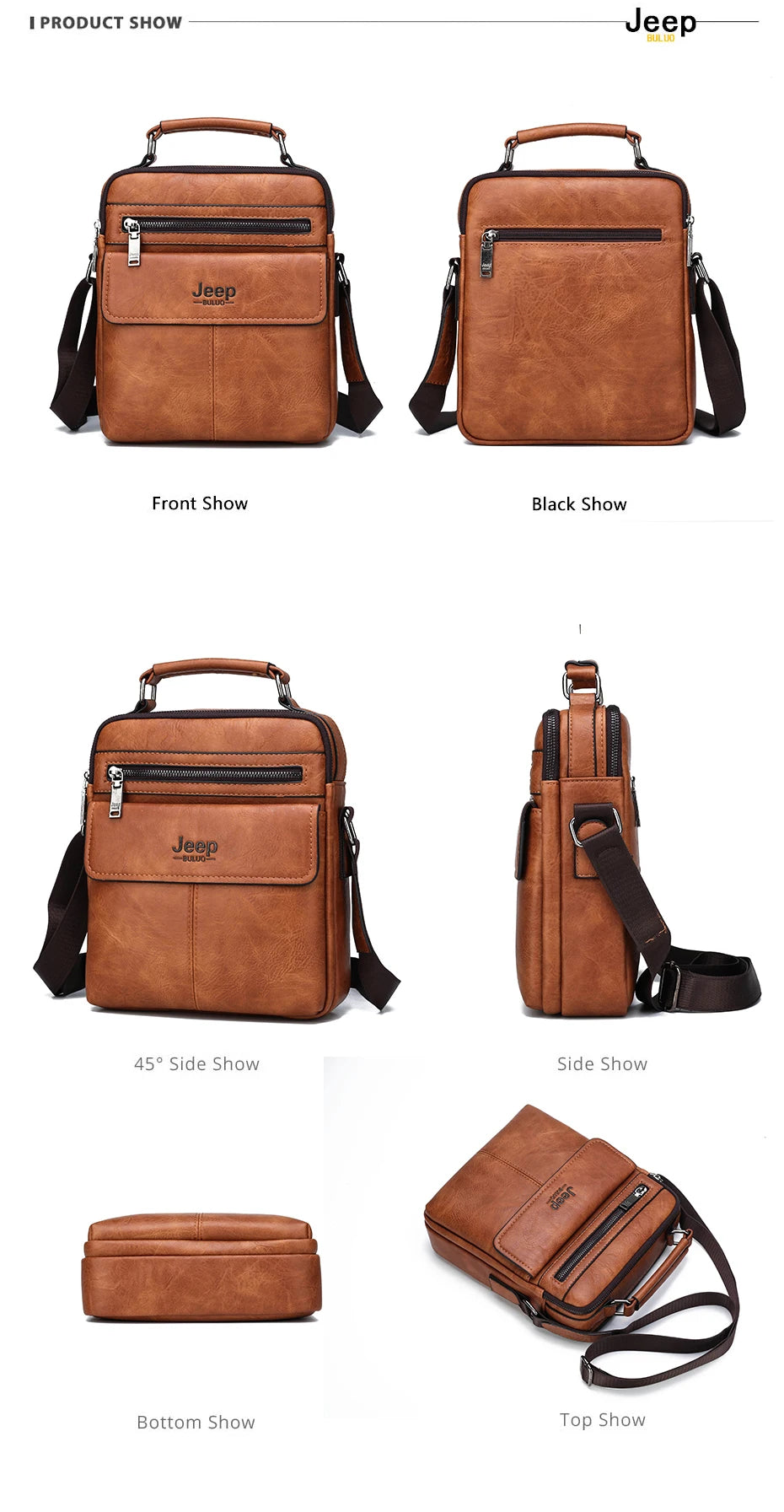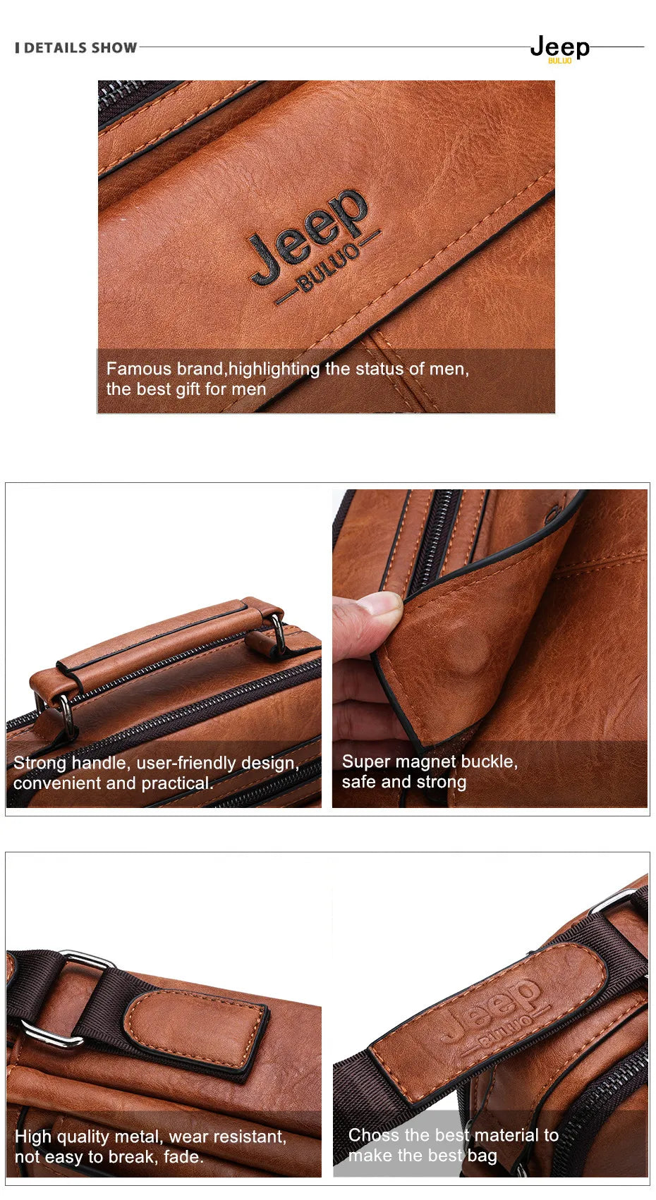 JEEP BULUO Men's Crossbody Shoulder Bags Split Leather Handbag Fashion Business Man Messenger Bag High quality Tote Hot
