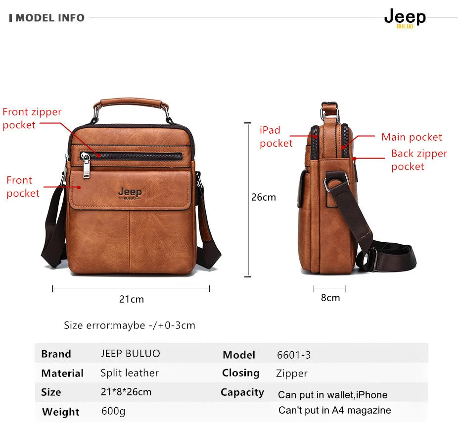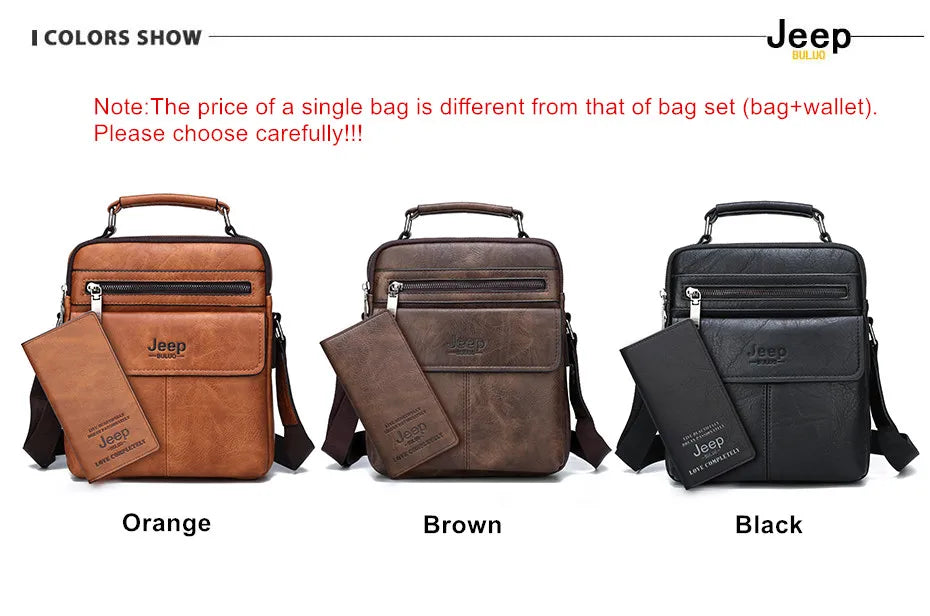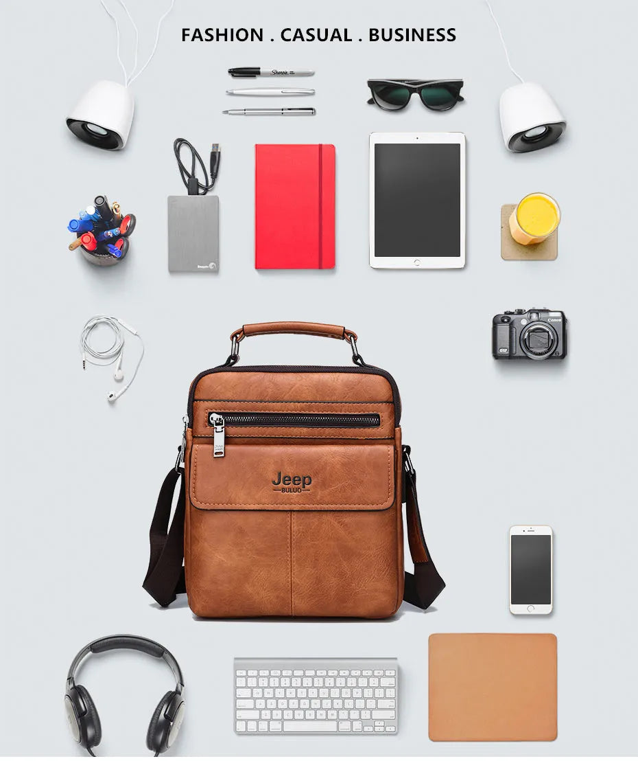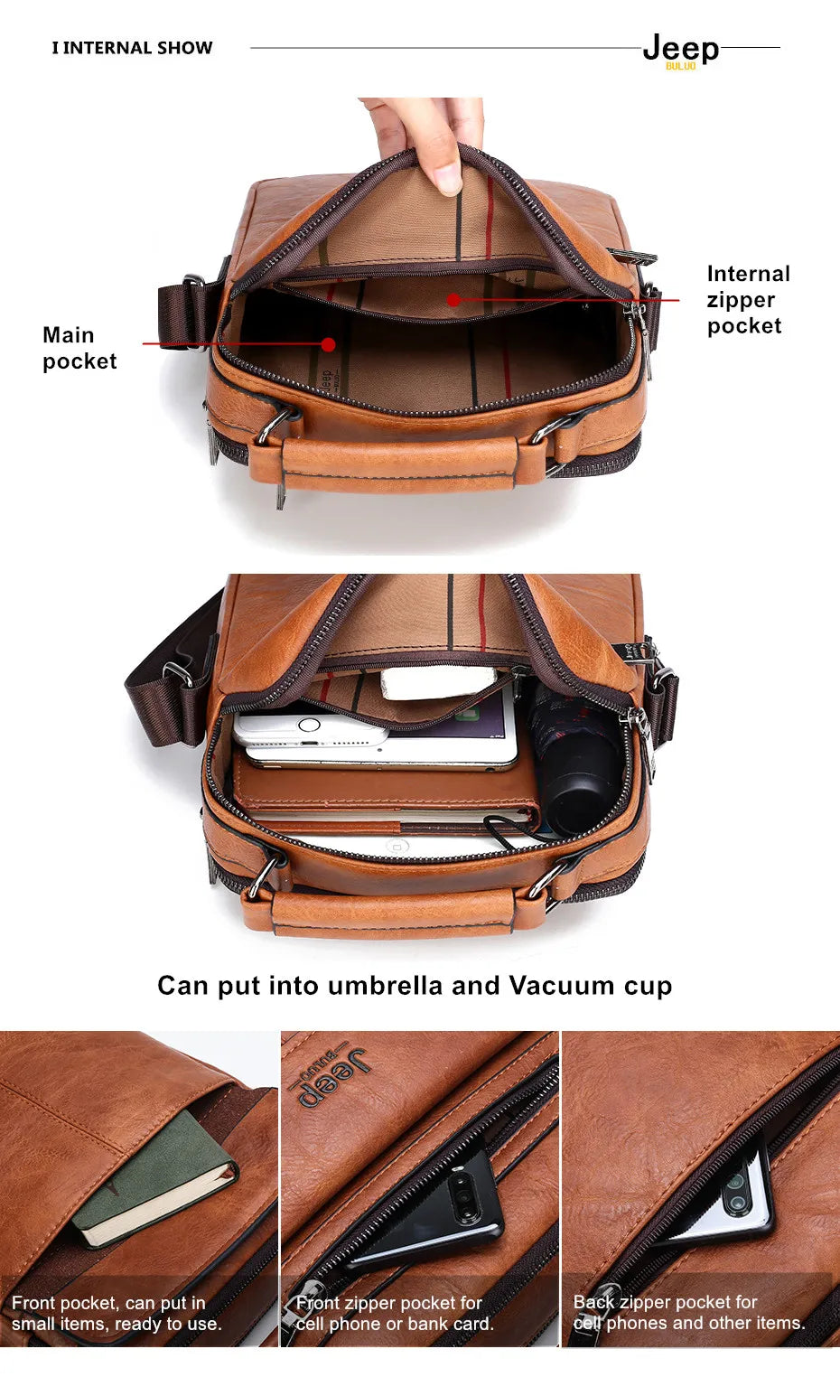 JEEP BULUO Men's Crossbody Shoulder Bags Split Leather Handbag Fashion Business Man Messenger Bag High quality Tote Hot