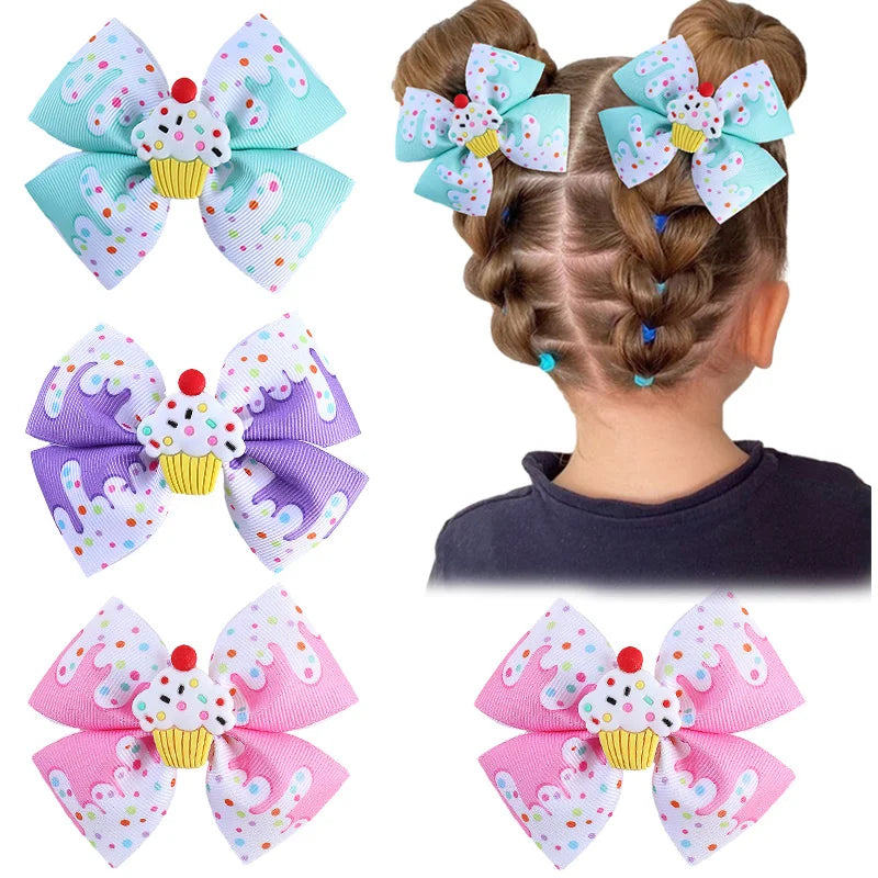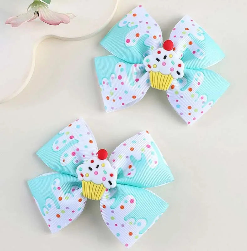 ncmama 2Pcs/set Grosgrain Ribbon Hair Bows Clips For Baby Girls Dessert Hairpin Barrettes Children Headdress Kids Headwear Gifts