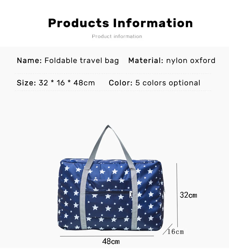 Nylon Foldable Duffel Bag Travel Organizer Weekend Hand Bags Portable Suitcases Large Travel Clothing Storage Bag Women's Tote