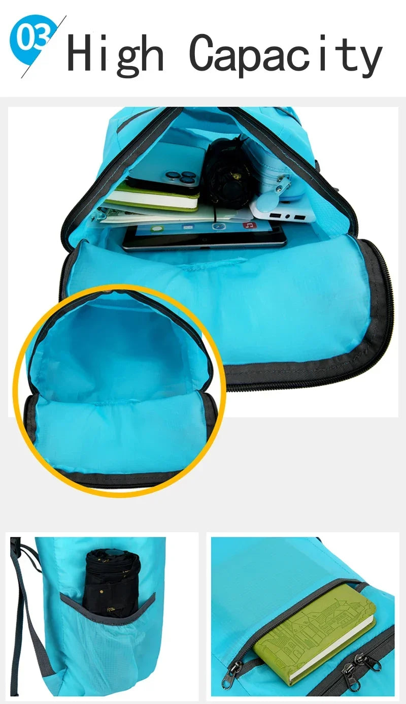 Outdoor Waterproof Bag Foldable Backpack for Women Men Camping Hiking Traveling Daypack Sport Bag Large Capacity Softback Bags