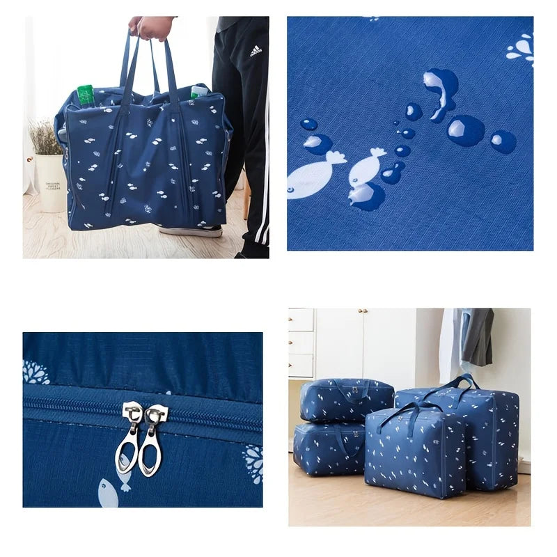 Quilt Storage Bag Cat Little Fish Rocket Pattern Quilt Storage Bag Oxford Material Moving Clothing Storage Bag Travel Organizer