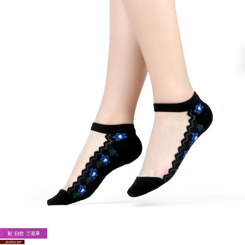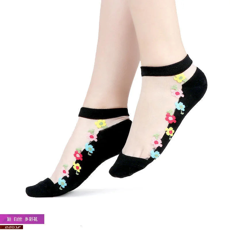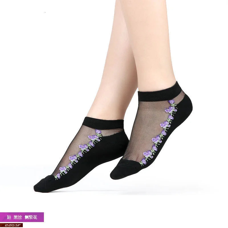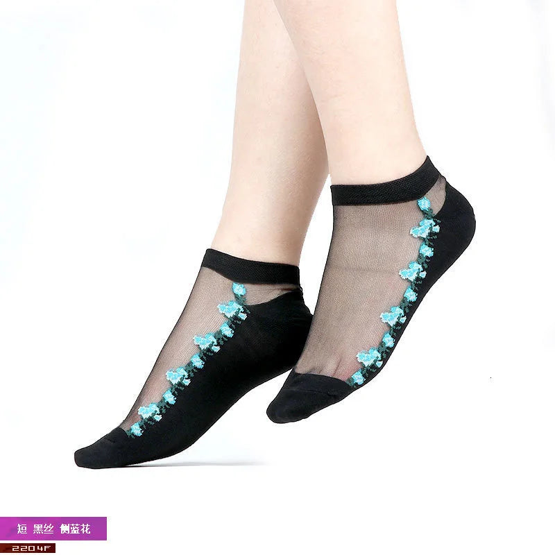 Sexy Lace Mesh Fishnet Socks Mixed Fiber Transparent Stretch Elasticity Ankle Net Yarn Thin Women Cool Socks 1pair=2pcs 2205