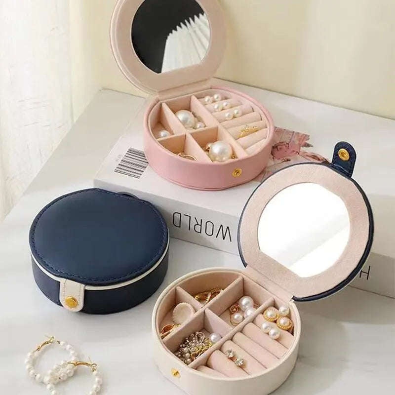 Single Layer Portable Jewelry Storage Box Ring Earring Necklace Storage Box Mini Travel Jewelry Storage Box with Mirror