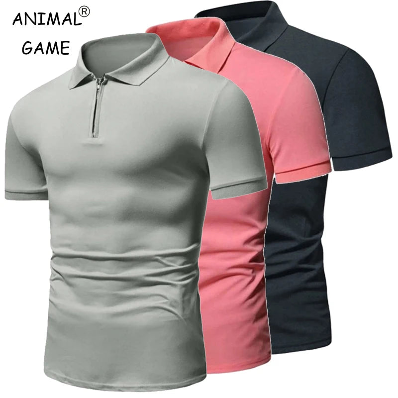 Summer Men's Short Sleeve Polo Shirts Zipper T Shirts for Men Lightweight Fitness Streetwear Breathable Lapel Solid Color Tops