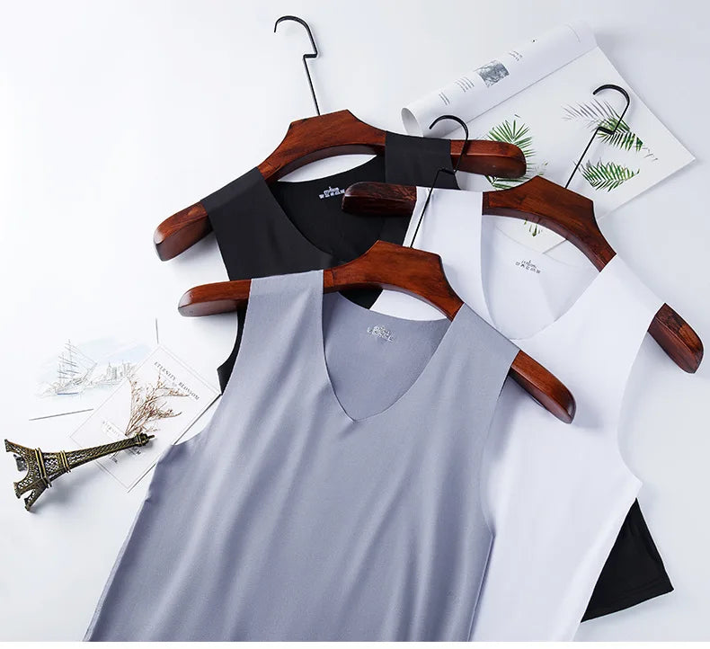 Summer Men's Tank Top Solid Color Quick-Drying Fitness Vest Cloth Sleeveless Waistcoat Running Sports Trend Short-Sleeved Tees