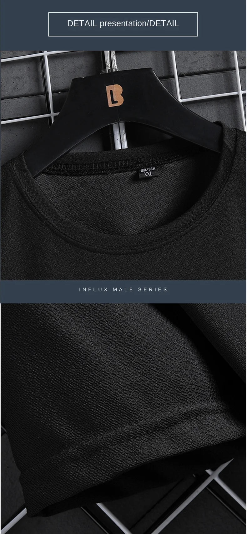 Summer new men's round neck quick drying casual sports and fitness breathable short sleeved+long pants set, two-piece set