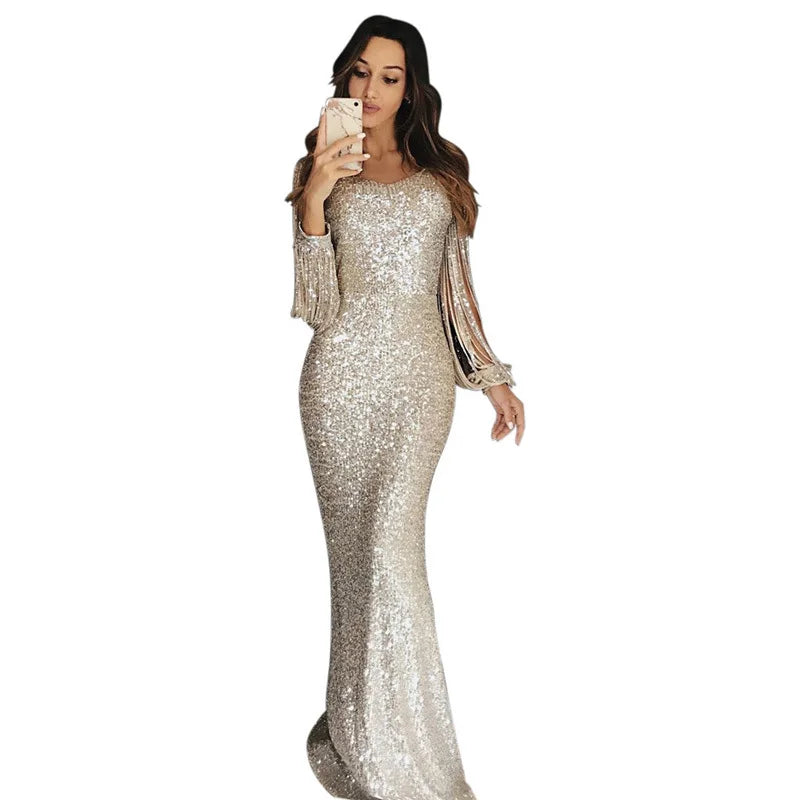 vestido sequin dress Long Evening Party Dresses Women Tassel Sequin Crystal Luxury Rhinestone Plus Size Elegant Dress XL Hot Sal