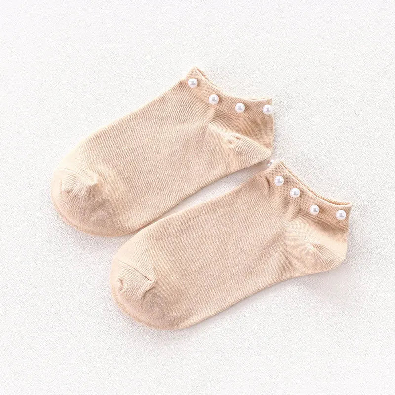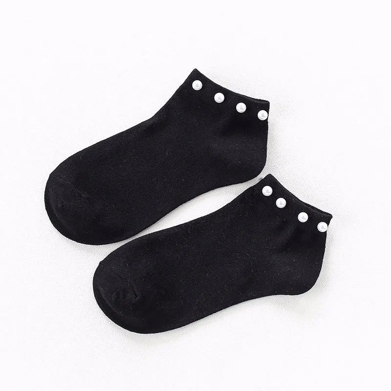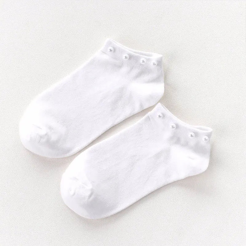 Women Socks Cotton Lovely Candy Color Imitation Pearl Women's Socks.Casual Ladies Girl's Short Female Socks Sox Hosiery