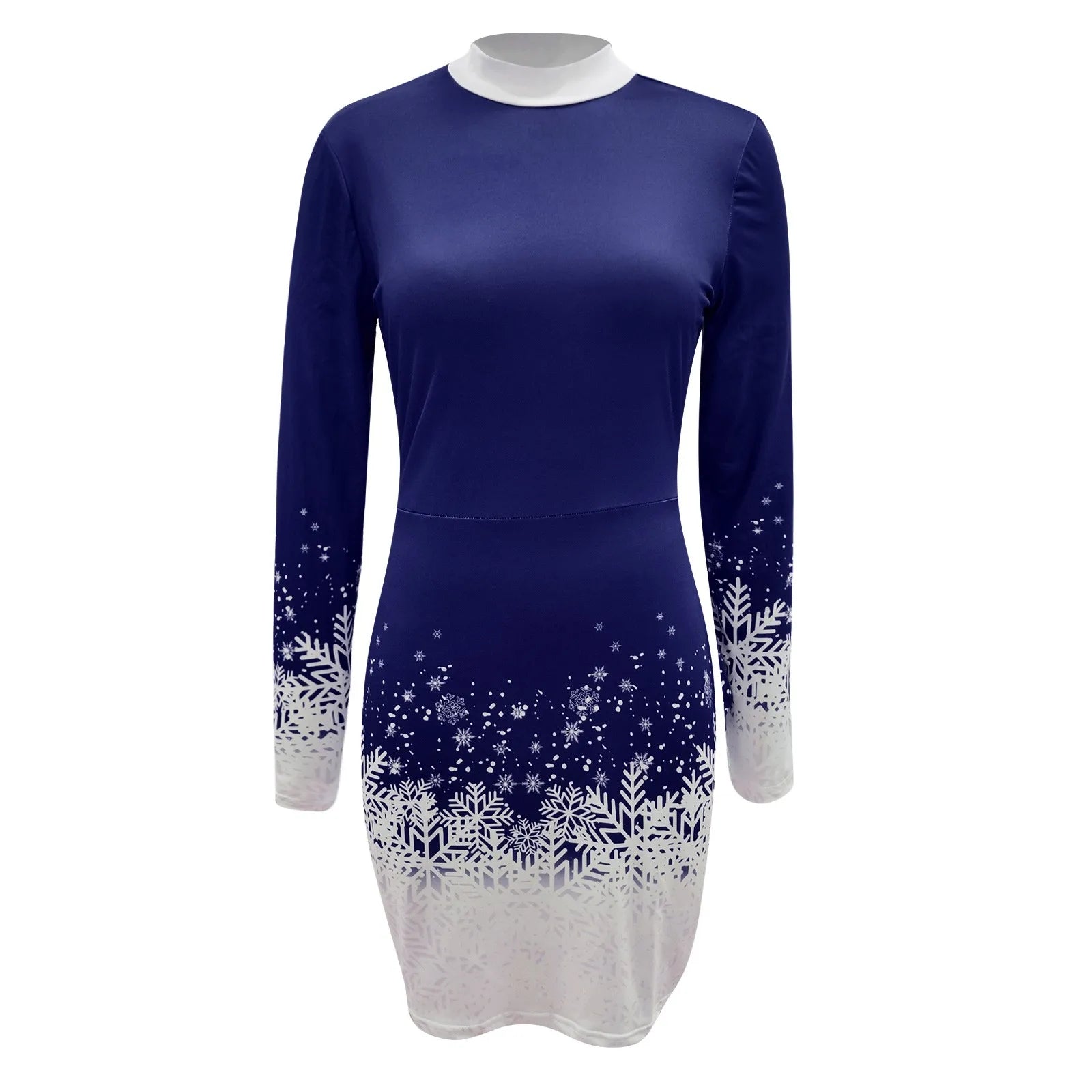 Women's Christmas Dress Hip Wrap Slim Fit Autumn Winter 2024 Dresses Round Neck Snowflake Printed Long-sleeved Party Clothes