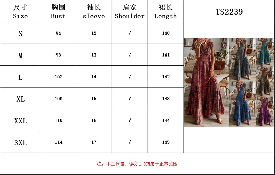 Women's Summer Bohemian Style 2024 New Dress With A Waistband Fashionable Floral Print Petal Sleeves Large Hem A-line Dress