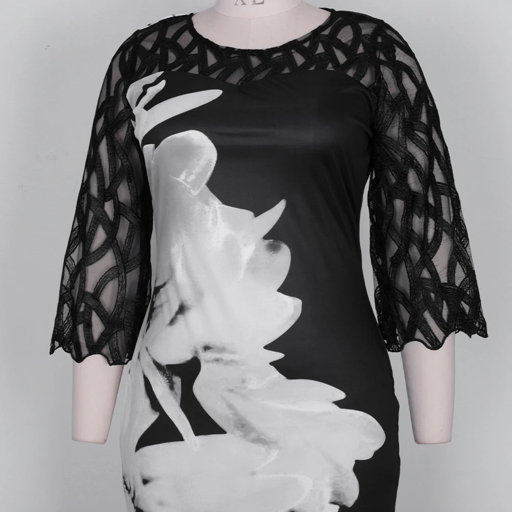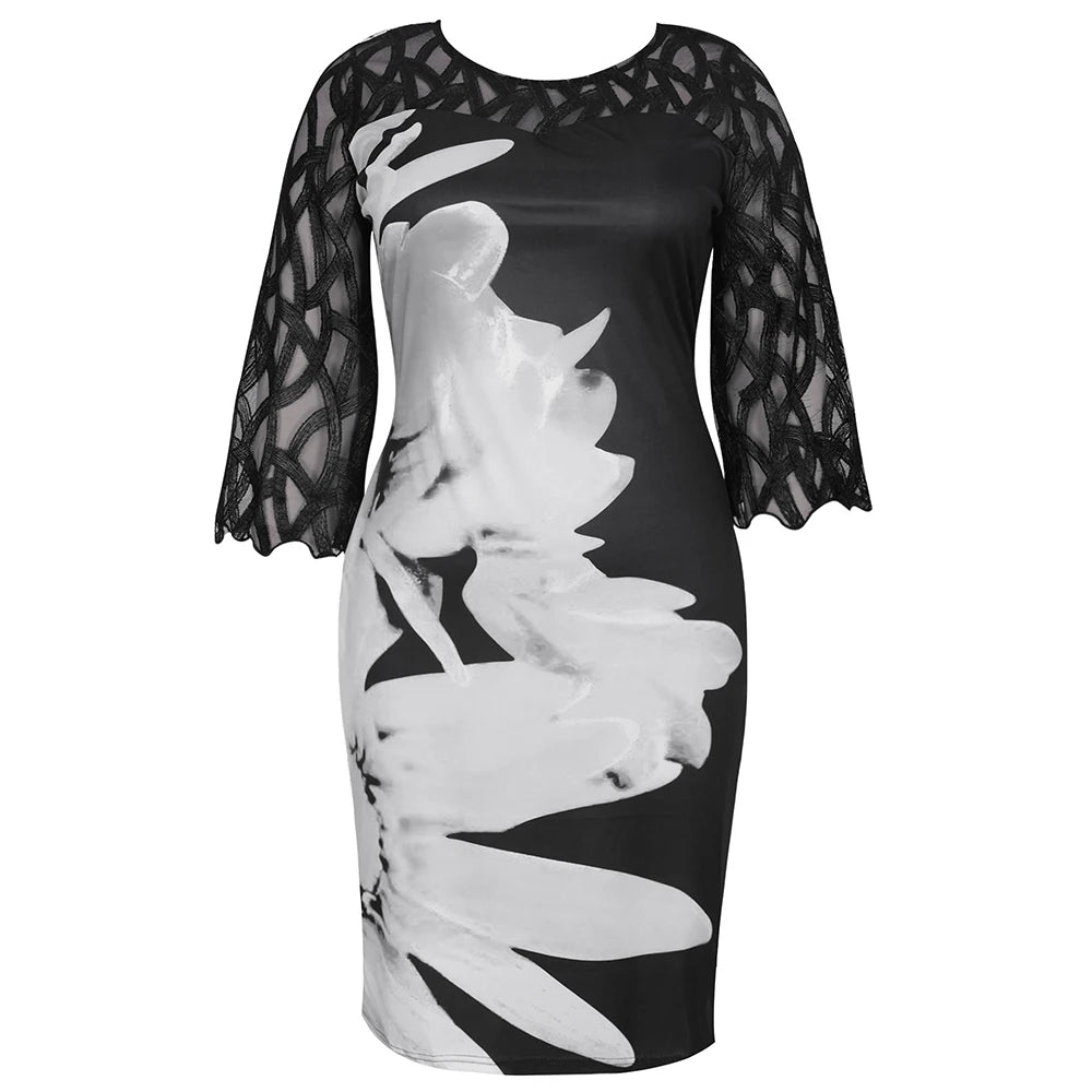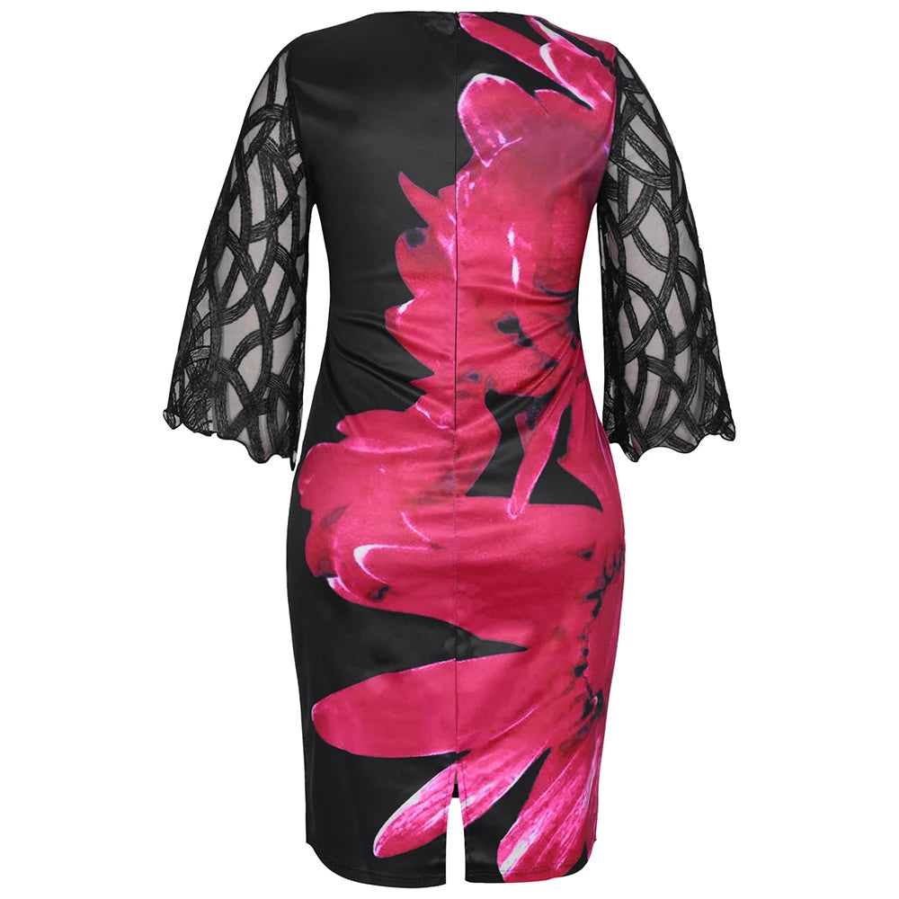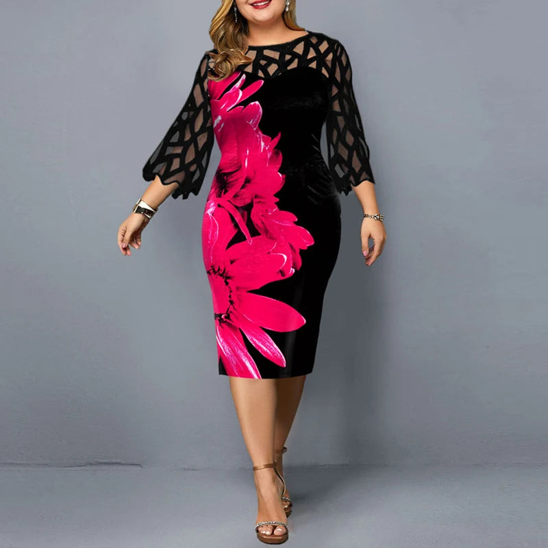 Women's Summer Dress Elegant Floral Print Casual Dress 2022 New Mesh Sleeve Birthday Club Party Dresses 3XL 4XL
