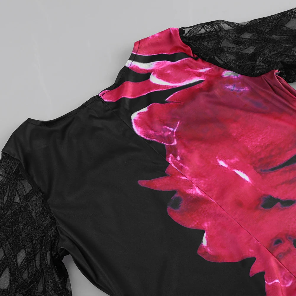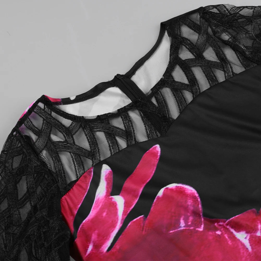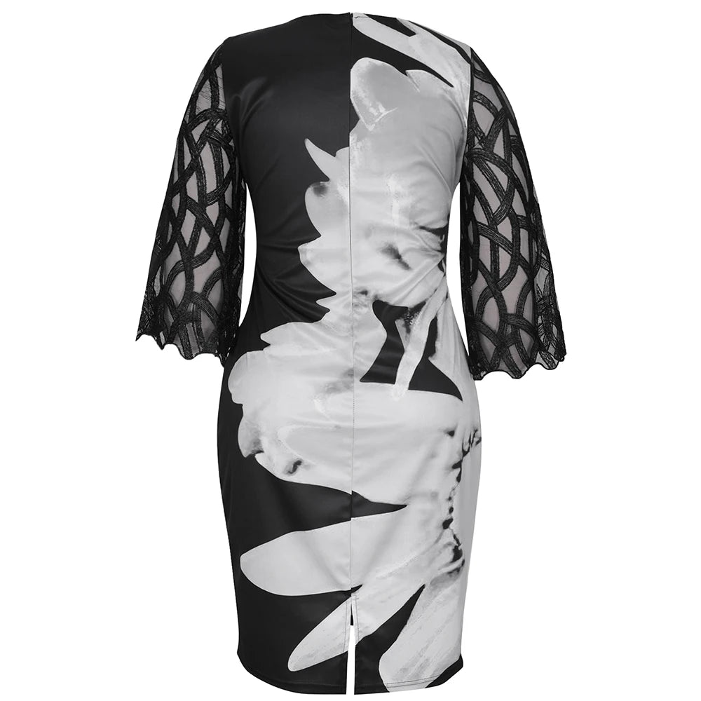 Women's Summer Dress Elegant Floral Print Casual Dress 2022 New Mesh Sleeve Birthday Club Party Dresses 3XL 4XL