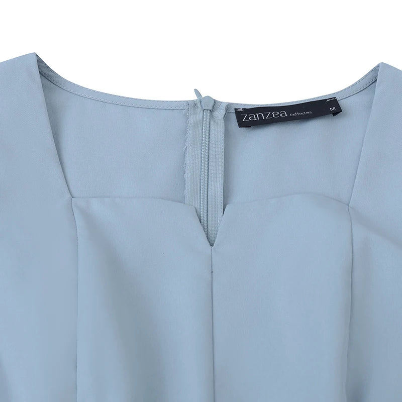ZANZEA Fashion Summer Dress Women Half Sleeve Square Collar Sundress Elegant Party Vestido Casual Solid OL Work Dresses Robe